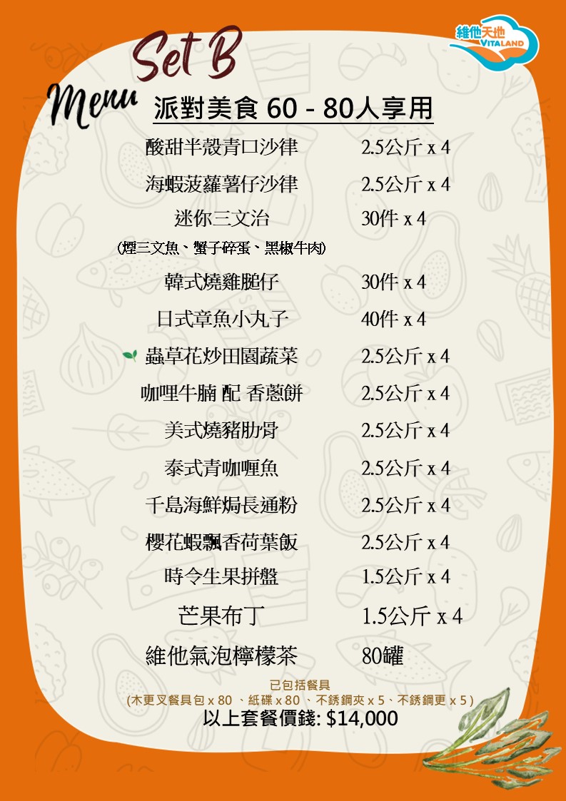 - In addition to the general lunch service for school, Vitaland also provides various Catering services: