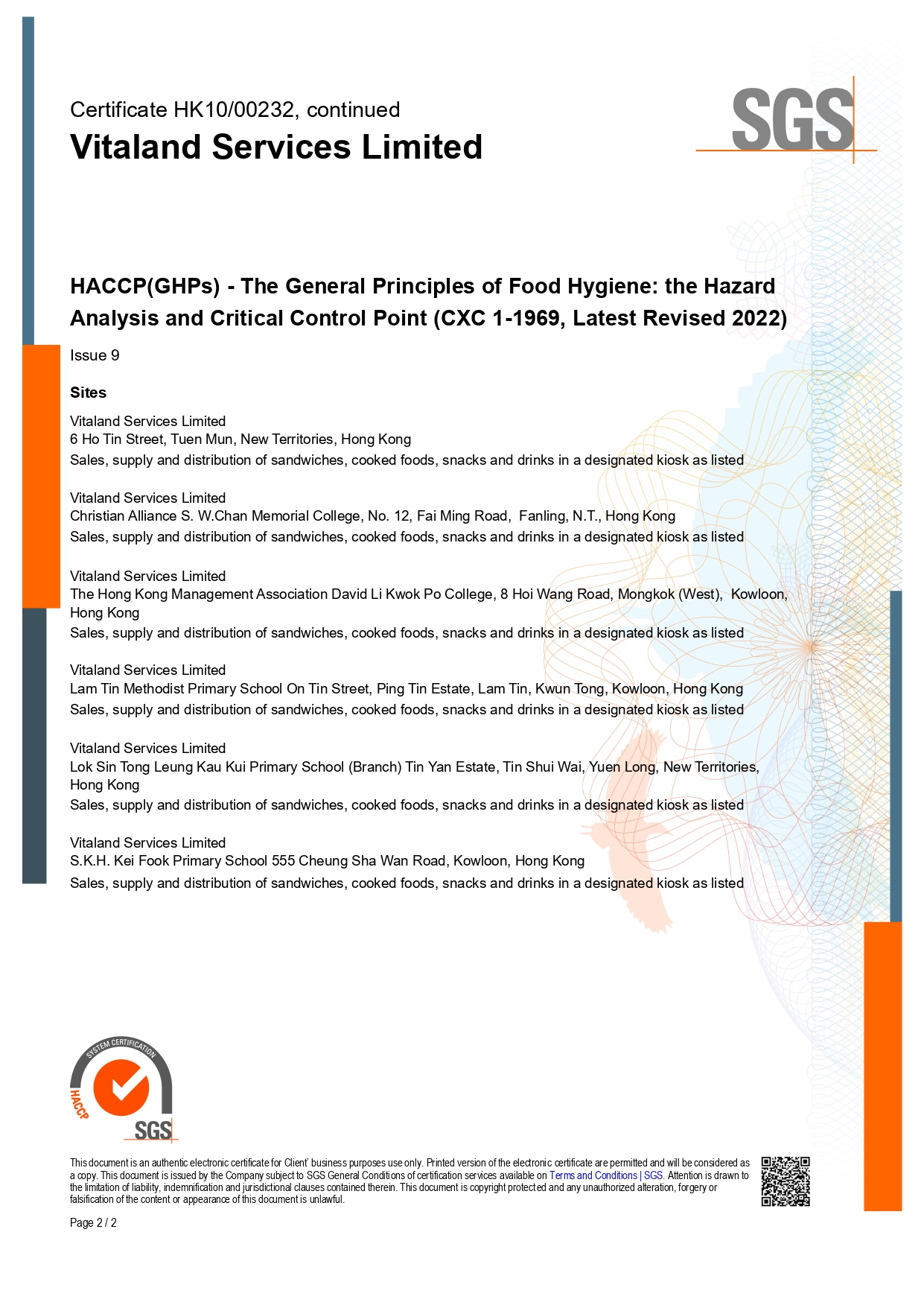 Vitaland was awarded HACCP accreditation in 2001. It is also the first retail organization in Hong Kong to be granted the accreditation. To ensure food safety and hygiene, the whole production process ranging from purchase of raw materials, product preparation, manufacturing, packaging to distribution and delivery strictly complies with the hazard critical analysis and quality control system.